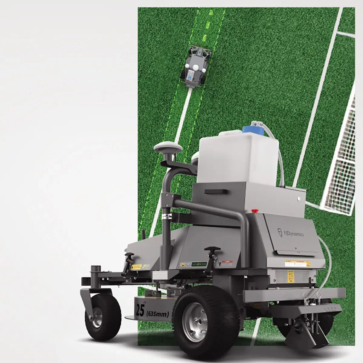 Idealne linie boiska nie powstają z dnia na dzień. Aby zapewnić jak najlepszy stan boiska, potrzebny jest znacznik o wysokiej precyzji. Model LM01 standardowo wyposażony jest w najwyższej klasy system nawigacyjny, który w ciągu kilku minut precyzyjnie rysuje linie, a jego bateria zapewnia wyjątkowo długi czas pracy. Dzięki konfigurowalnym mapom i liniom ten robot do znakowania pozwala uzyskać wyniki, które zachwycą zarówno graczy, jak i widzów na każdym boisku do piłki nożnej, rugby i lacrosse.